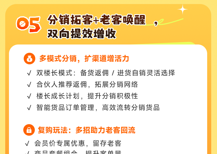而这一切,零点校园SaaS系统都能为你赋能:从仓店的供应链管理,到楼长的分销结算,再到私域的用户运营,一站式帮你把运营效率拉满。